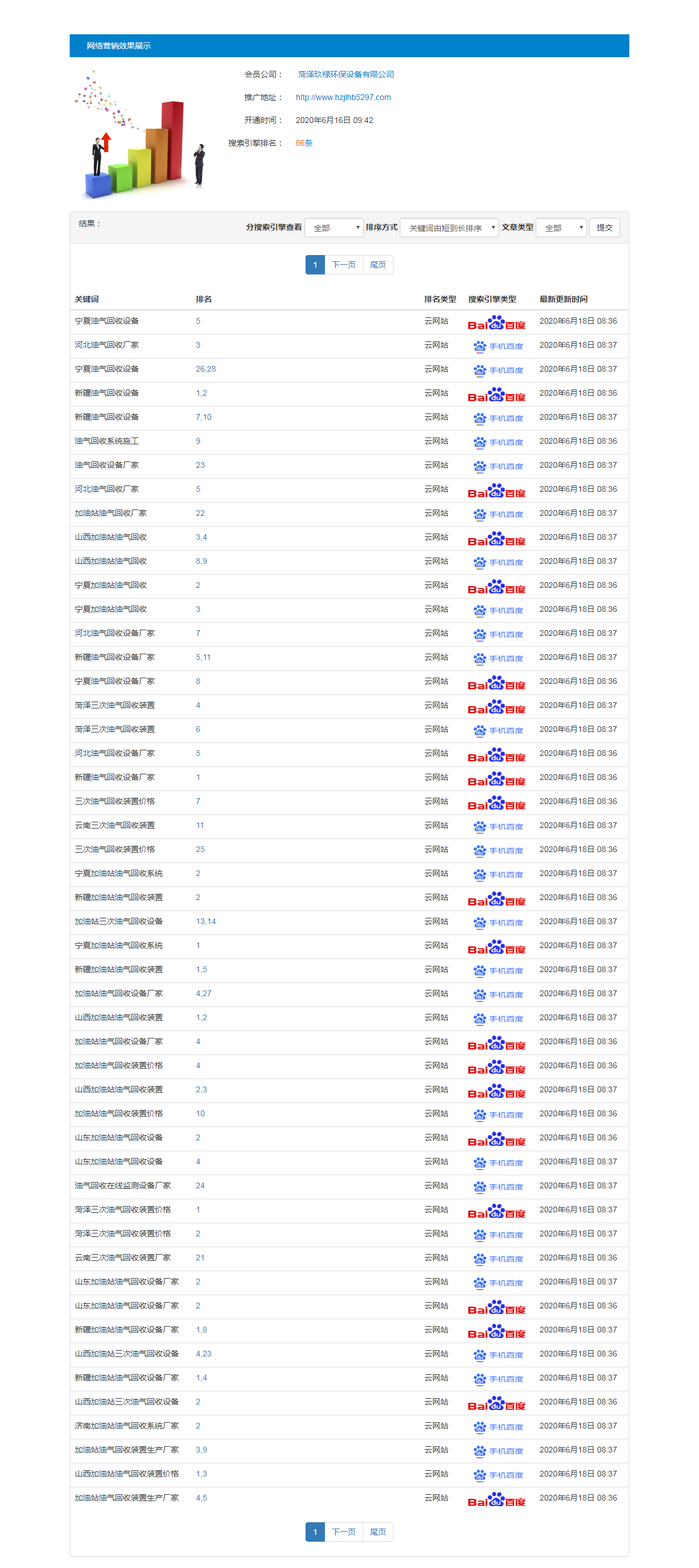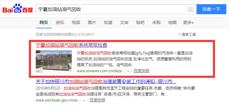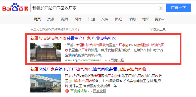 油氣回收行業全網推廣測試兩天上詞情況
