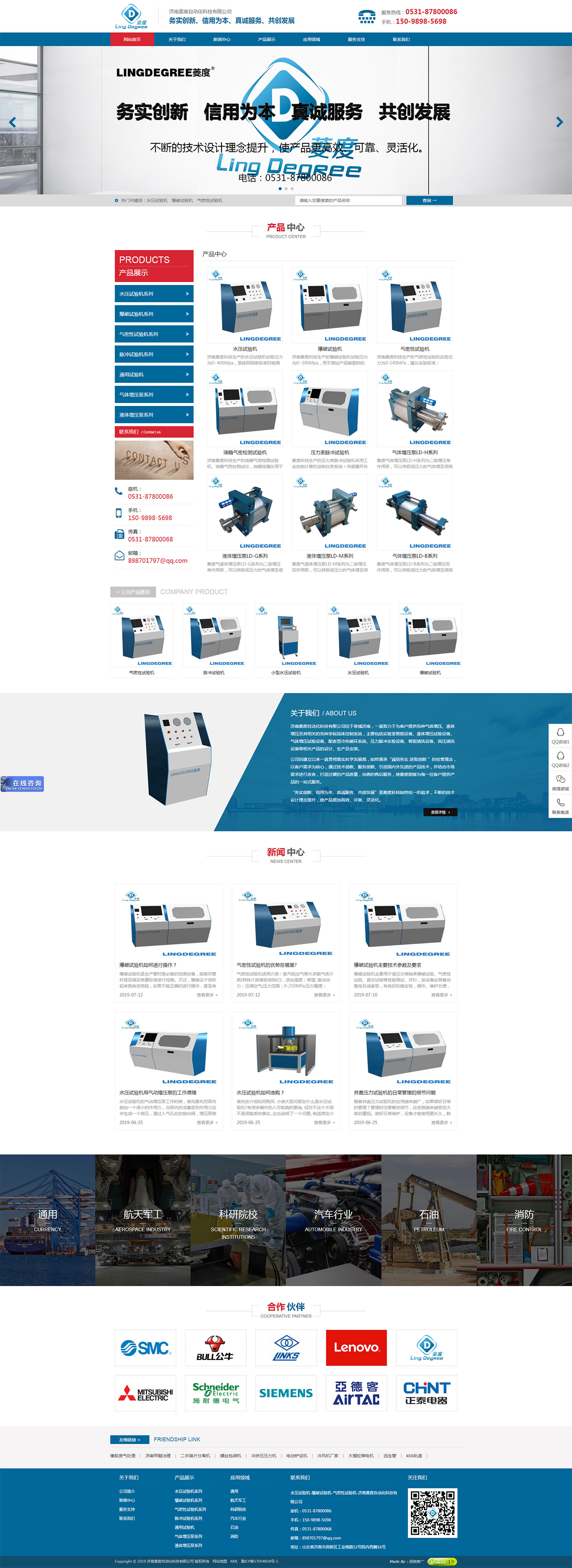 濟南菱度自動化科技有限公司位于泉城濟南,一直致力于為客戶提供各種氣體增壓、液體增壓及其相關的各種非標流體控制系統,主要包括實驗室智能設備、液體增壓試驗設備、氣體增壓試驗設備、配套型冷熱循環系統、壓力脈沖實驗設備、智能清洗設備、高壓清洗設備等相關產品的設計、生產及安裝。